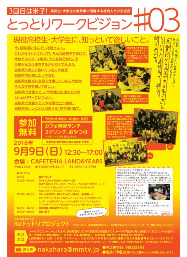 申込先:Re:とっとりプロジェクト(株式会社エムアンドエムドットコー内)