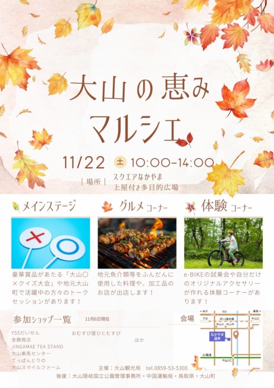 「大山の恵みマルシェ」を22日土曜日に開催します。