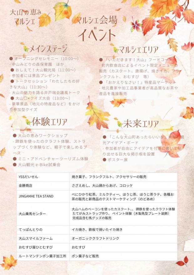 「大山の恵みマルシェ」を22日土曜日に開催します。